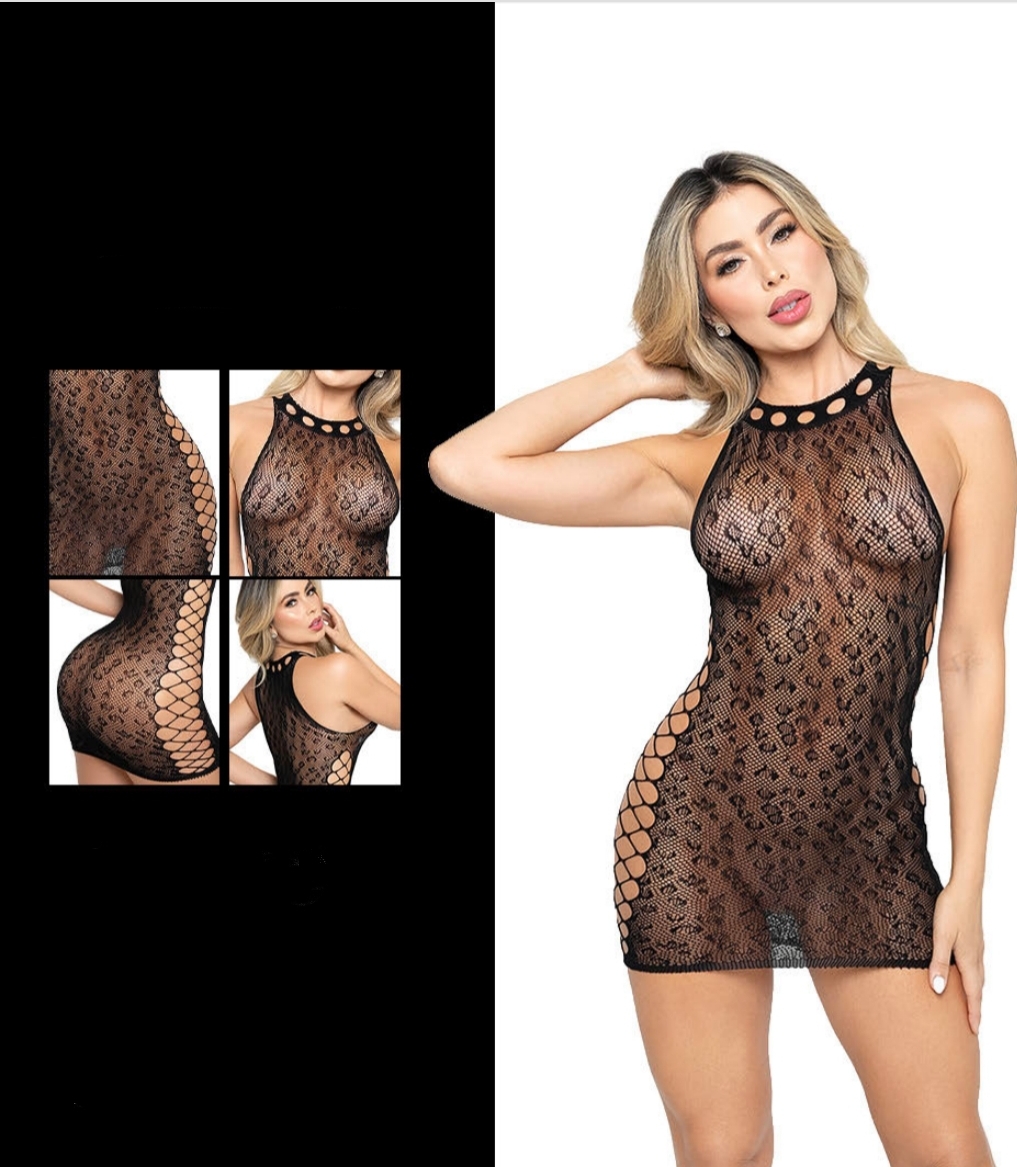 – Tejido calado con patrón animal y transparencias estrategicas.